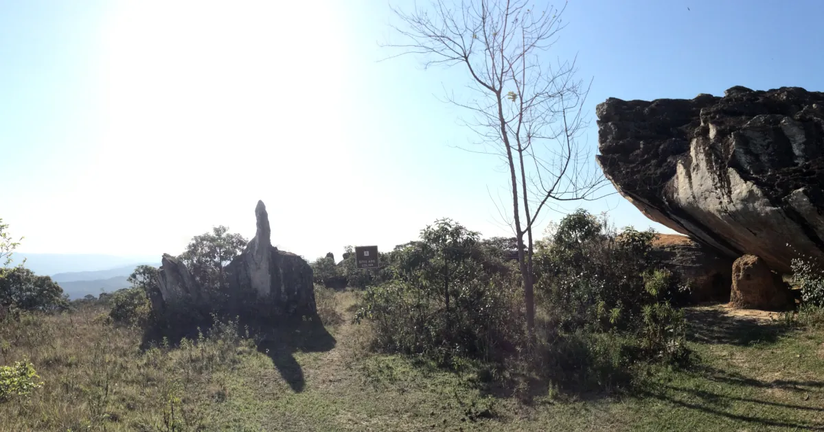 Foto da paisagem do sítio arqueológico Pedra Esculpida em Minas Gerais.